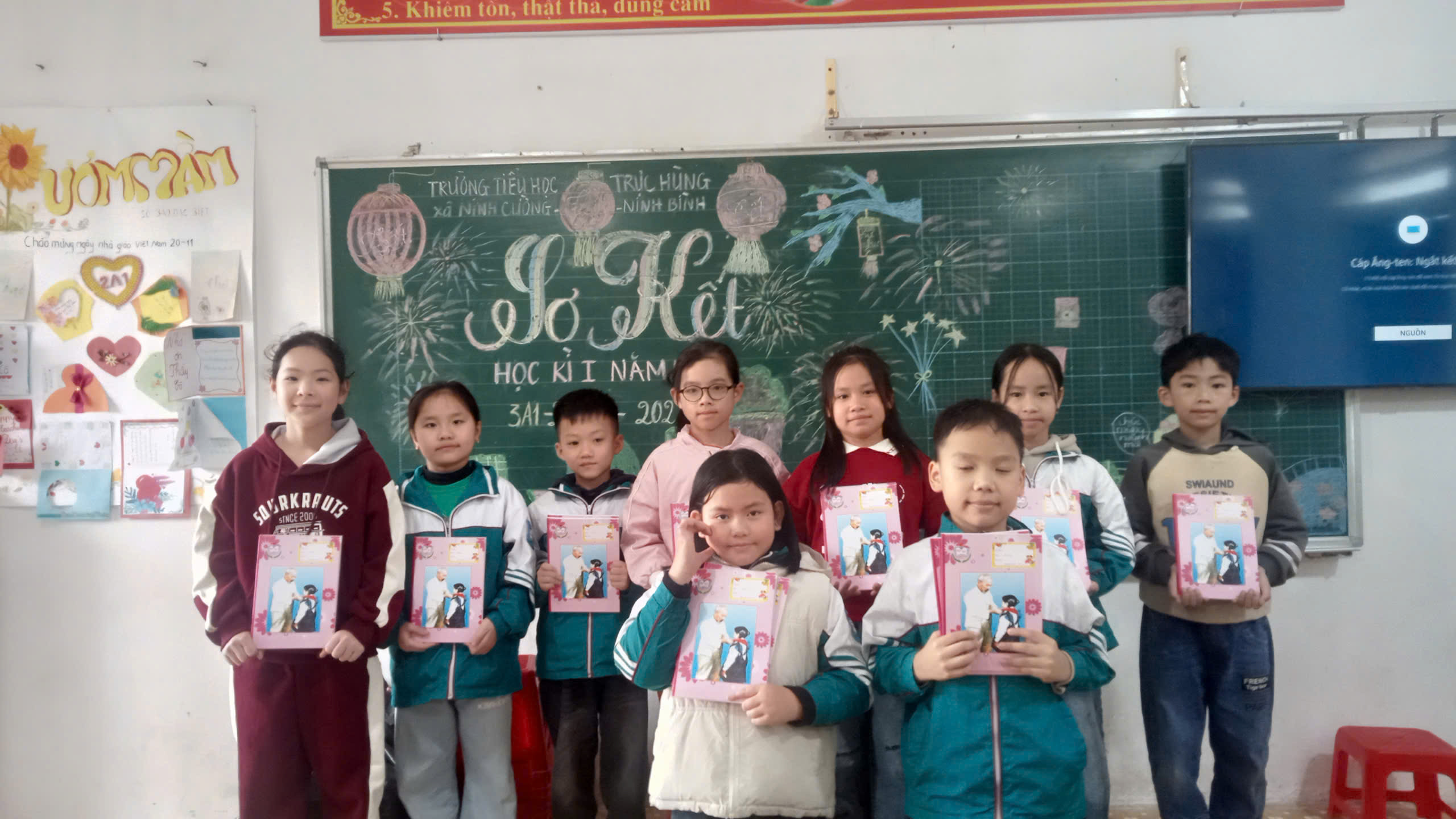 Học sinh lớp 3A1 nhận phần thưởng tại buổi sơ kết học kì I