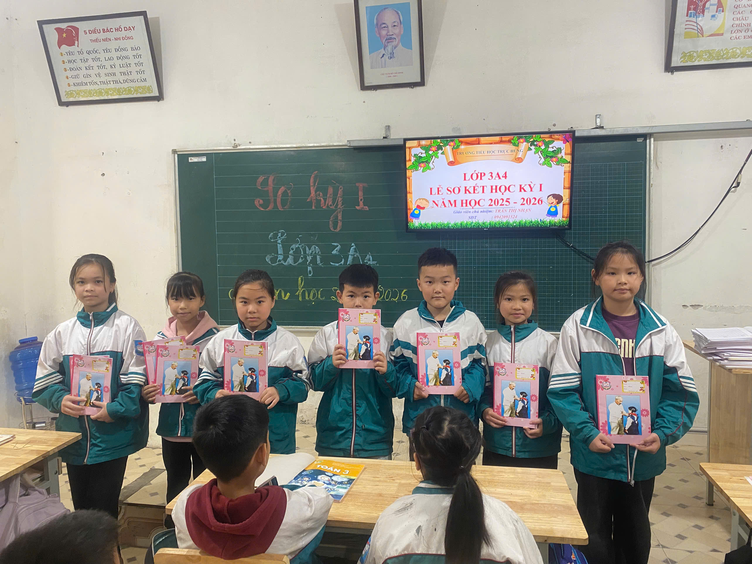 Học sinh lớp 3A5 nhận phần thưởng tại buổi sơ kết học kì I
