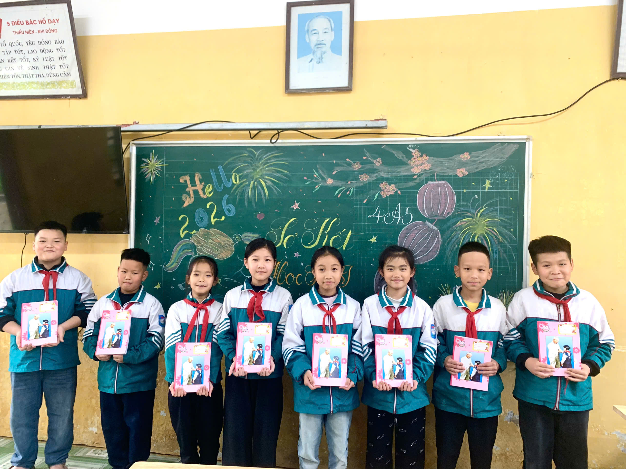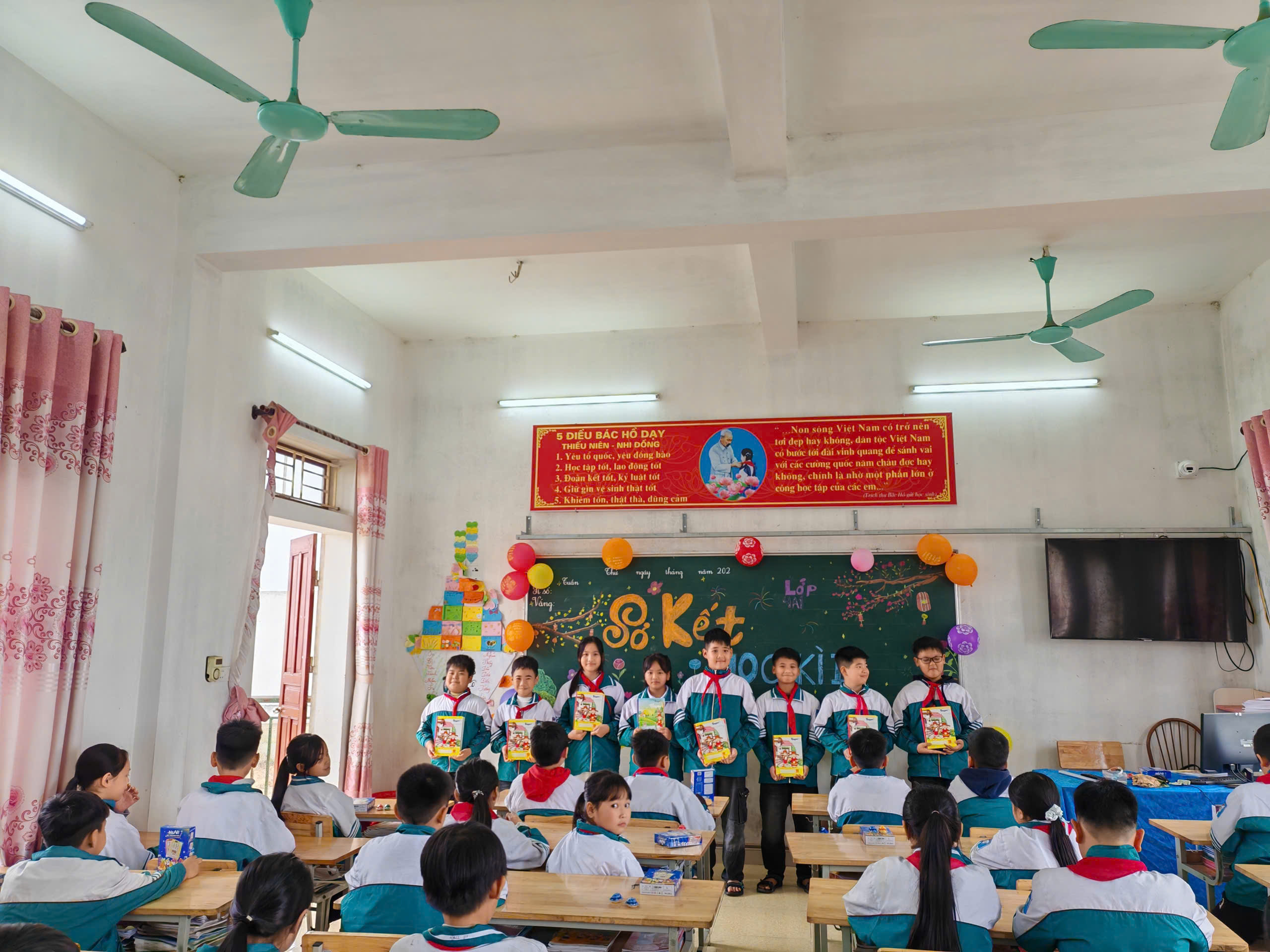 Học sinh lớp 4A5 nhận phần thưởng tại buổi sơ kết học kì I