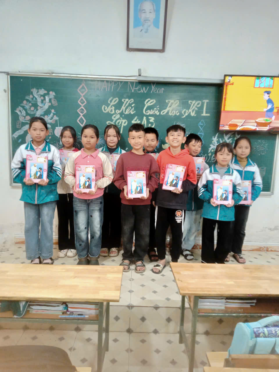 Học sinh lớp 4A2 nhận phần thưởng tại buổi sơ kết học kì I