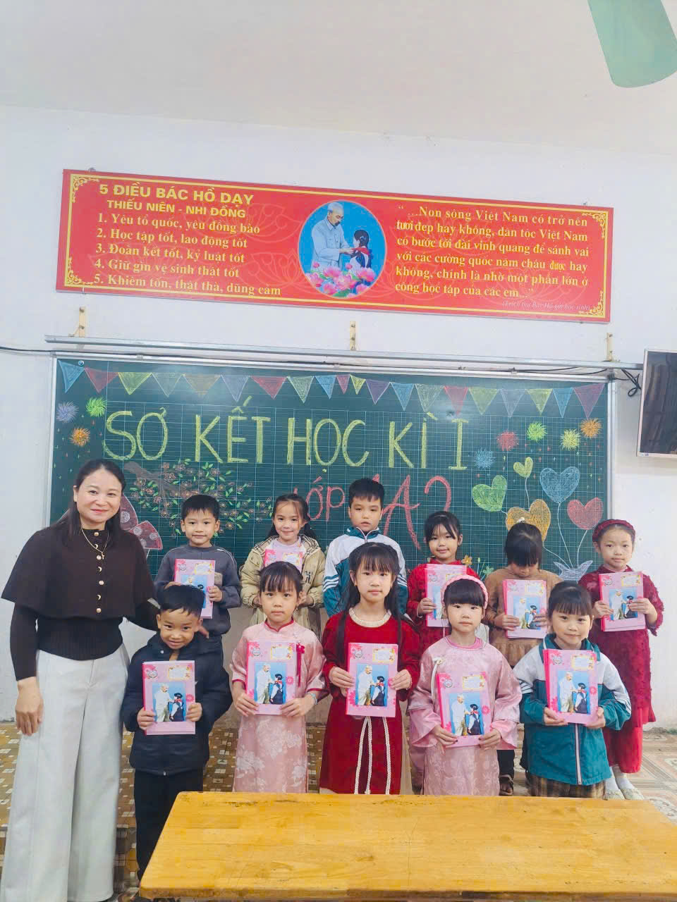 Học sinh lớp 5A2 nhận phần thưởng tại buổi sơ kết học kì I