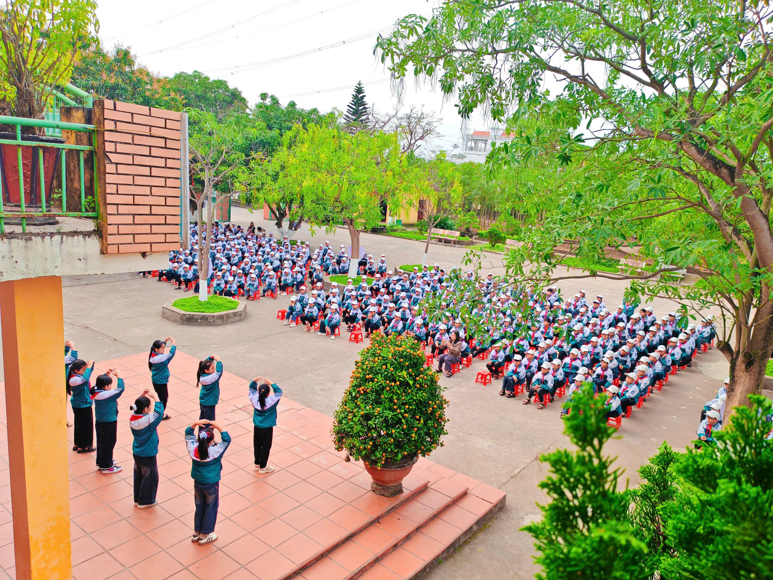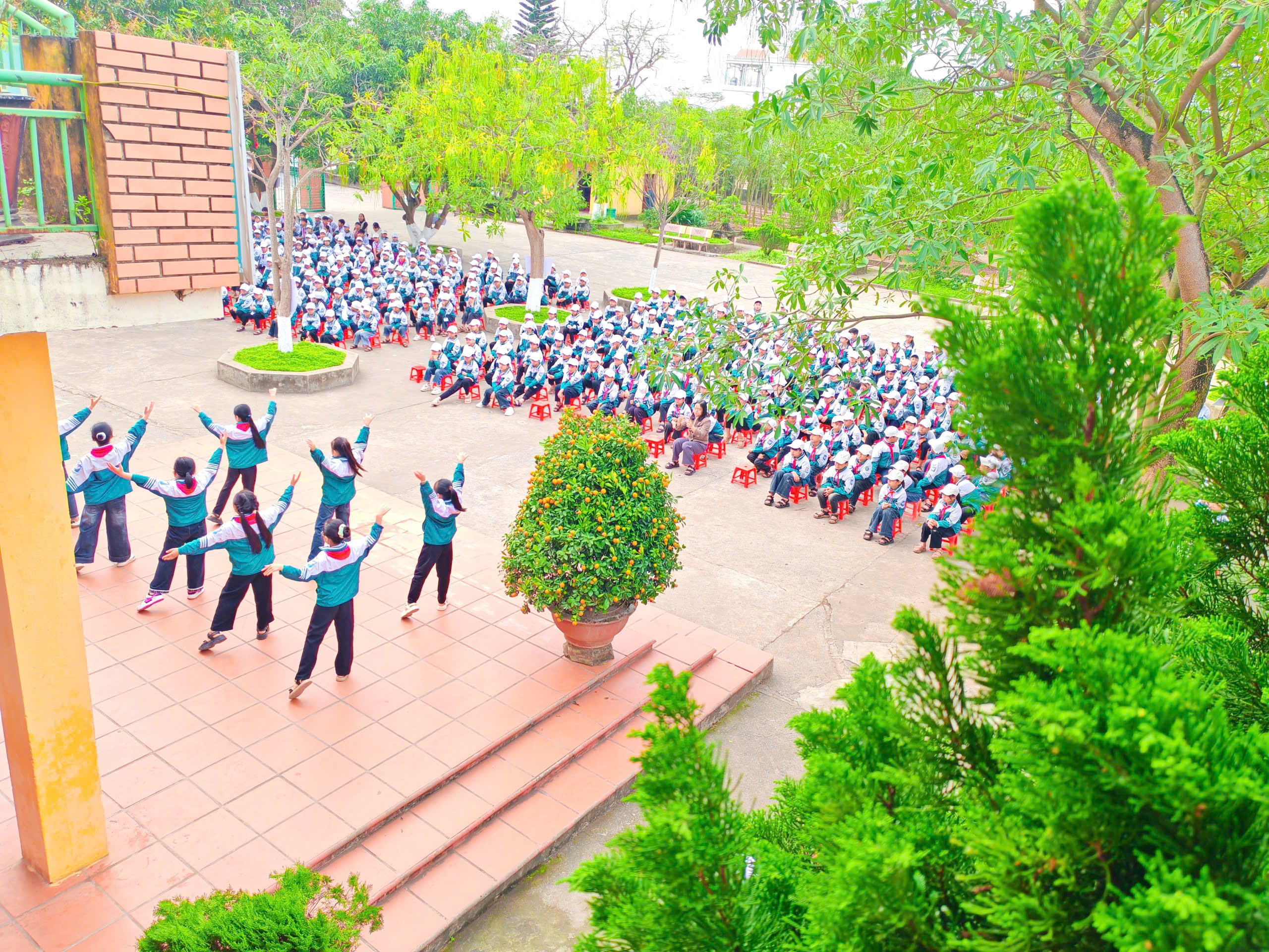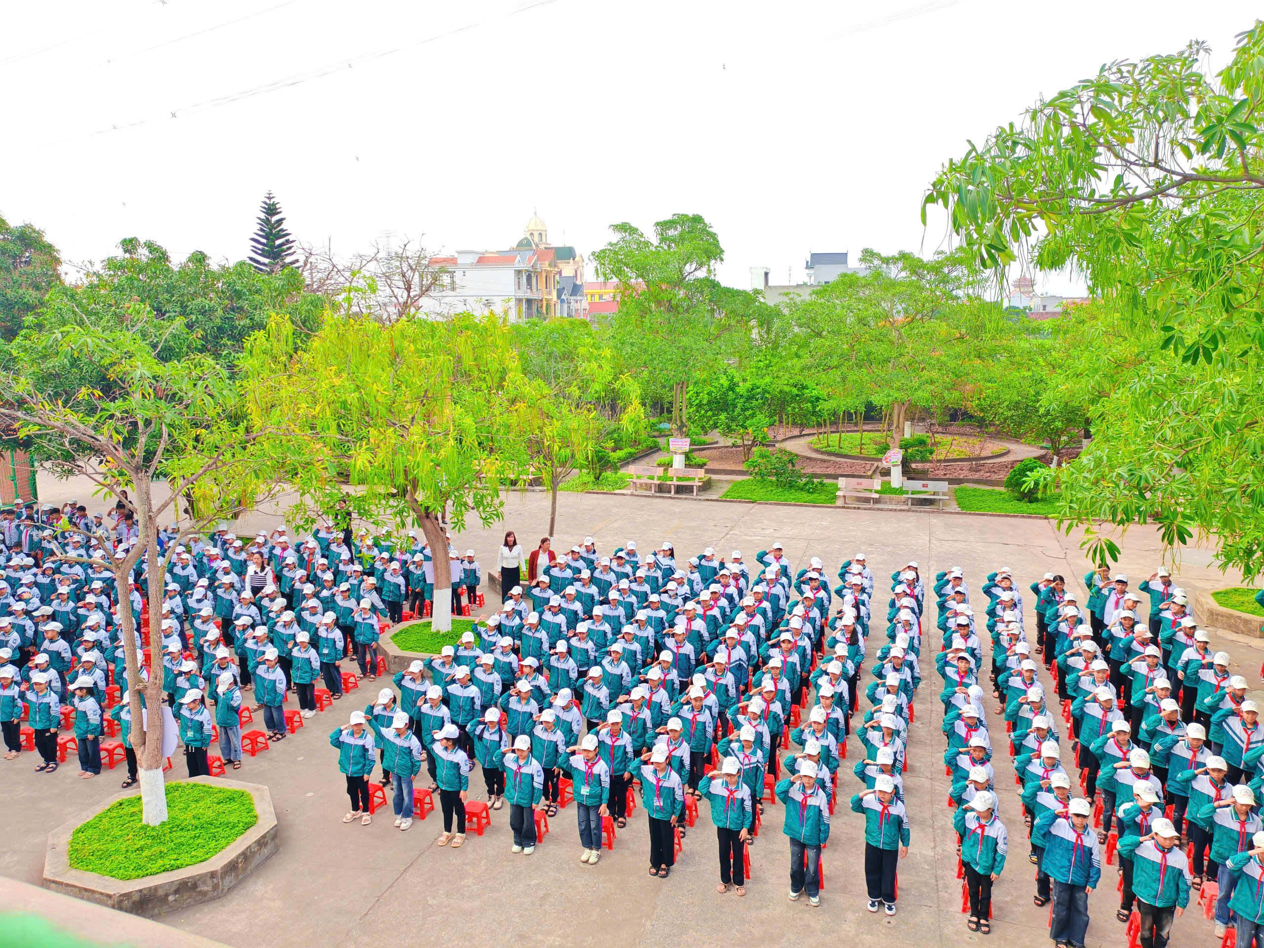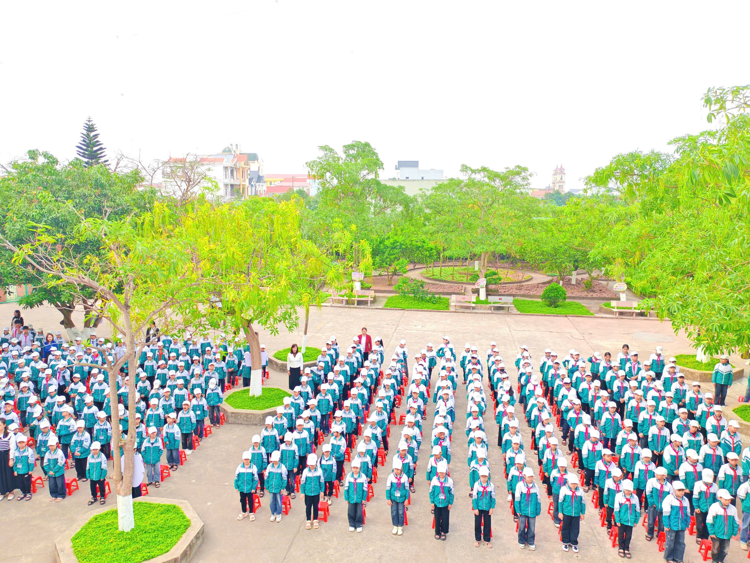 Học sinh toàn trường trong ngày hội “Thiếu nhi vui khỏe – Tiến bước lên đoàn”