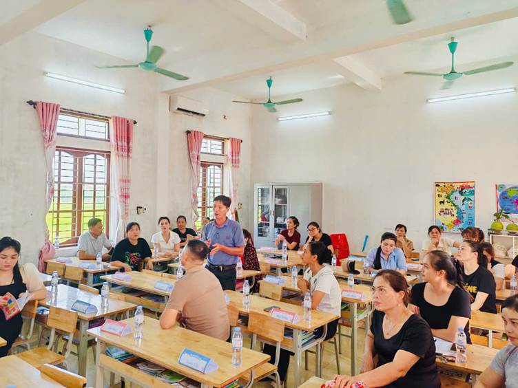 Thầy Nguyễn Thiện Đắc – Uỷ viên BCH Đảng bộ, Bí thư Chi bộ, Hiệu trưởng nhà trường phát động Tuần lễ hưởng ứng học tập suốt đời năm 2025 tới giáo viên toàn trường.